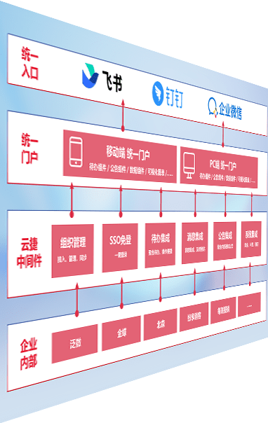 对协作平台提供支持服务,,支持企业应用与协作平台对接,,,包含组织同步、、消息集成、、待办集成等。。支持目前主流的协作平台:钉钉、、、企微和飞书。。。。